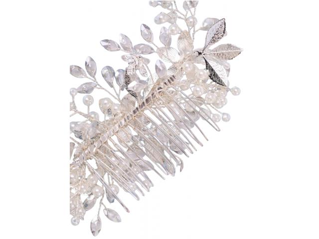 Grinalda Noiva Flores Prata e Pérolas - Arranjo de Cabelo para Noiva Casamento